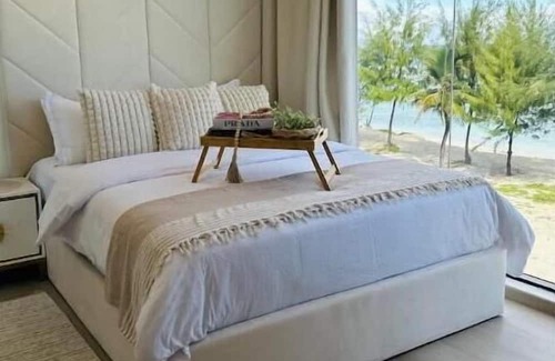 large, perfectly working kitchen set A seating area where guests can unwind and watch television. A balcony with a breathtaking panorama. You can enjoy a breathtaking view of the beach and ocean while you're laying down on the master bedroom bed. And enjoy a mesmerizing sunrise while laying down on the comfy bed. Our property is directly across from the beach and the ocean.