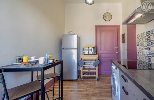 Apartment located on the first floor of a building including the owner's accommodation on the ground floor and a second accommodation on the 1st floor. Entrance, kitchen, lounge - living room (160x200 cm sofa bed), bathroom (walk-in shower) with WC, 1 bedroom (1 160x200 cm double bed). Swimming pool open from June to September from 9 a.m. to 7 p.m. Free parking in a closed courtyard. Sheets + bathroom linen included. Closed bicycle storage room in the owners' garage. Bright apartments with large volumes and high ceilings. Large parks of several hectares landscaped bordering the vineyards of the estate. Swimming pool and terraces with a dining area with garden furniture and barbecue. Clear view of the summit of Granier and the Apremont vineyards..