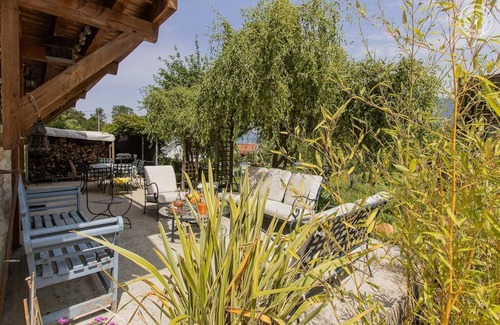 Detached house on 2 levels. Ground floor: an entrance separated by a glass roof, kitchen-living room-lounge with wood stove (wood included), Wifi connection. Upstairs: large mezzanine / relaxation area (sofa bed 120 x 190 cm for 1 person), 4 bedrooms with TV each (1 double bed 140 x 190 cm / 1 double bed 160 x 200 cm with balcony-terrace / 2 single beds 80 x 190 cm / 1 bedroom with a bath-island and private WC, 1 double bed 160 x 200 cm). Bathroom with corner bath + walk-in shower, separate WC. Living room opening onto a sunny terrace with garden furniture Pleasant orchard of 2000 m² on the property. Private parking on site. Old barn of the 18th century renovated with taste at the entrance of a quiet hamlet in the heart of a green environment. Privileged location for this very comfortable gite. Unobstructed view of the countryside and the Lépine massif. Supervised bathing at Saint Jean de Chevelu at 11km. On the way to Compostela..