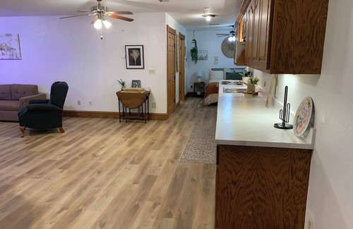 Welcome to your home away from home! Our charming upstairs studio apartment, nestled above our family home, offers a cozy and relaxing retreat just two blocks from downtown Wilburton, Oklahoma. With a private keypad entrance and parking conveniently located to the left side of the house, you'll enjoy the perfect blend of privacy and comfort during your stay.