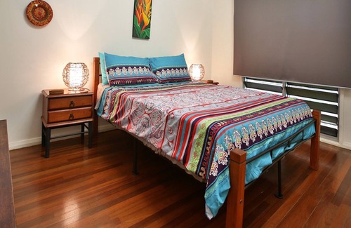 ENTIRE furnished & self-contained, well-appointed, large, elevated, light and airy "Territory" house set amongst tropical gardens with plunge pool and 2 large balconies : ALL TO YOURSELF - just you, family & friends. Sleeps up to 8 (+ 2 air beds or cots; so up to 10 'at a pinch'). There are 3 bathrooms: 2 in the house and 1 bathroom and laundry downstairs. All linen supplied. Bring own food, drink & personal items. Min 2 night stay except Public Holiday long weekends (min 3 night stay applies).