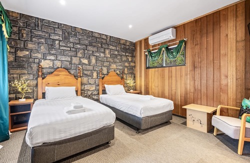 Set on the large Sun-Kissed Retreat in the heart of the Dandenong Ranges, this hotel-style room has; 2 King Single beds, Modern Bathroom and Kitchenette. Great location surrounded by forest green trees and close distance to boutique shops, cafes, restaurants and the main strip of Emerald. Relax with your morning coffee on the arm chairs looking out into the luscious greenery. Perfect for a peaceful weekend away, a rest stop to explore the Dandenong Ranges or as a wedding guest in the area.