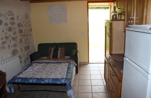 the apartment is composed of a kitchen / living room (with sofa bed for a small brotherhood of two 110x180), a bathroom (shower no bathtub) and a bedroom with a double bed 140x190 mattress (sheets & towels not provided) and as we are in the countryside a large open space to stretch the legs of the youngest directly at the exit of the apartment, one, two, three go !!