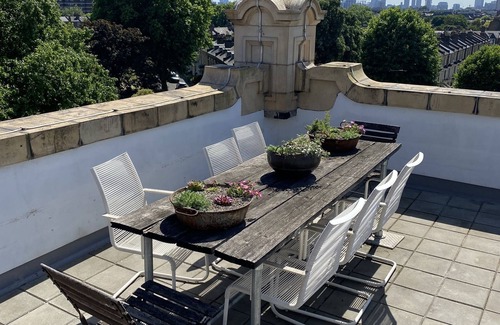 take the steps up to the private roof terrace with spectacular views over victoria park the city skyline.