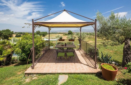 the location of the house is very panoramic and overlooks the swimming pool, the park, the gym and the panoramic area overlooking assisi and monte subasio The view descends to the Umbrian Valley and the Basilica of Santa Maria degli Angeli to go up to the left towards Bettona, Torgiano and Perugia; to the right towards Spello, Foligno and Montefalco. Behind us the wooded Monti Martani, Todi, Spoleto and Deruta and the famous walks of Perugia Vecchia.