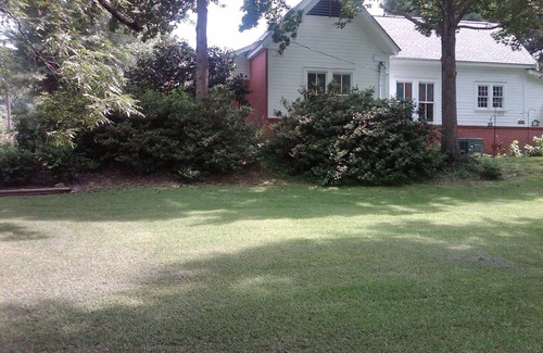 the home is located on four town lots ( ~ 1 acre) with a large oak tree, organic vegetable and flower gardens There is ample room for privacy to read, relax and enjoy the sounds of nature. The house has a covered front porch complete with rocking chairs. There are decorative water fountains on the front porch to add that soothing sounds of nature needed for every vacation. The entire yard is fenced for a totally safe environment for your pets. The 40 foot salt water swimming pool is heated to 90 degrees for year round swimming. Pets in the pool are not permitted.