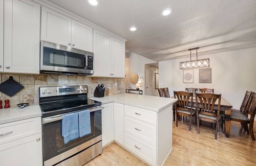 most of the furnishings and all of the bedding and premium bath towels are brand new! enjoy cooking and baking in the well-appointed, updated kitchen with solid surface counters and all new bakeware, silverware, glassware, dishware--everything!