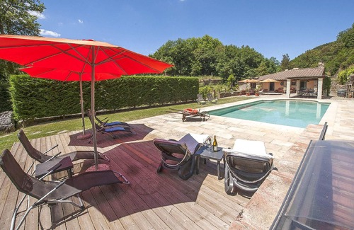 the spacious garden with pool and outdoor whirlpool promises you hours of relaxation You can dine al fresco on the terrace and enjoy the picturesque surroundings. Watch your children play on the beautiful lawn while you laze on the sun loungers.
