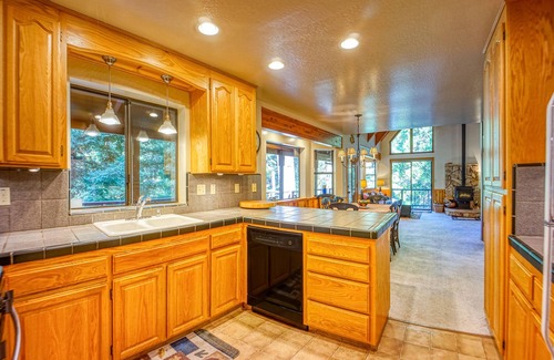 This magnificent mountain retreat has the best of everything... just one minute's walk from Lakemont Lake. Lupine Lodge has a private rec room with pool table, darts, wet bar and plasma TV. The great room is spacious with soaring windows peering over the treetops, a woodstove, and the fully-stocked kitchen even has a cappucino machine! The large deck surrounded by nature is the perfect place for a BBQ, complete with charcoal grill and ample patio furniture.