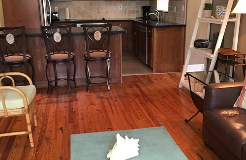the complex includes a beautifully renovated, private, heated pool furnished with ample chaise lounges and tables with sun umbrellas for your days in paradise The canopied courtyard is complete with a barbecue grill and dining tables and chairs for your enjoyment. For your convenience there are two on-site laundry facilities in the complex.