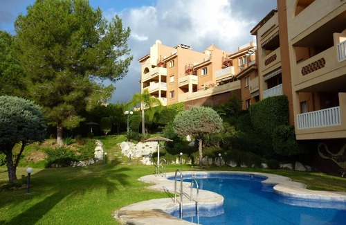 A luxury apartment located in the exclusive La Reserva De Marbella area and within walking distance of the beach, Supercor supermarket shop and restaurants/bars nearby. Overlooking Cabopino golf course from the balcony, there are tropical gardens within the complex and one of the four pools are on site ([ plus a childrens pool). Also you are only minutes from some of the best golf courses the Costa Del Sol has to offer. A couple of minutes in the car or a 15 minute walk will take you to the beach and to the many restaurants at Cabopino Marina. 15 mins to the centre of Marbella by car or Fuengirola, and 25 mins to Puerto Banus. The apartment is situated on the 1st floor which can be reached by a lift directly from the secure underground car park. A well equipped spacious apartment with all the luxuries of home. The main bedroom boasts a king sized bed with a Juliet balcony and an en-suite bathroom. The second bedroom is twin bedded, also with an en-suite bathroom. Discounts are available for 'longer stays' We have free high speed fibre Wi-Fi and English and Spanish TV stations .Aircon is included in the price between May and October. From 1st November to 30th April Heating /Aircon is not included in the price/rate per night. However, this service is available on a metered basis and a charge is calculated based upon metered usage..