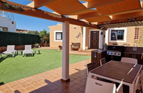 this superb villa is located in caleta de fuste is a 10 minute walk from the beach and shops It is situated on the Campo De Golf golf course.