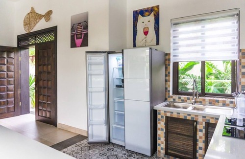 the thoughtful care and attention and the attractive decoration of villa elena provides a stylish yet comfortable and relaxing home from checking in to the final farewell A large fully equipped kitchen with a huge fridge, Nespresso Machine, bar, 2xgas cooker, kettle, microwave, toaster and all necessary amenities aims to please keen chefs.