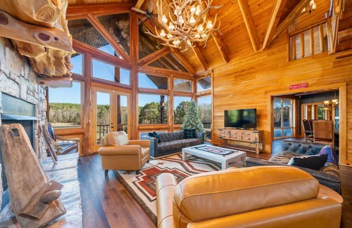 you have found paradise! this 30-acre secluded property has plenty of space for 28 guests total Tucked away in the woods, you'll have plenty of privacy while only being minutes away from town, marinas and local restaurants. Whether you want to be by the pool, hot tub, or watch the kids play in the fields-your will discover endless fun at our 6,800sq ft luxury lodge retreat. Relax with the whole family at this peaceful place to stay, stargaze at night or relax by the fire. Nestled against the Ouachita National Forest, the woods and wildlife will entertain you. Deer, wild turkeys, and Bald Eagles are frequent visitors to our pond.