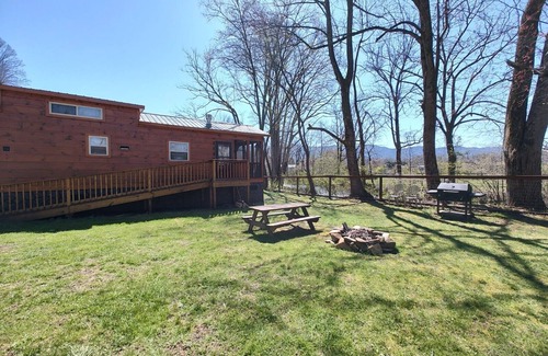 Cozy cabin on the Valley River surrounded by mountain views! Can sleep 7 with one bedroom down (queen bed), loft with two full size mattresses up and a couch down but two-three guests would be more comfortable. This cabin features granite counter tops, pine flooring, cathedral ceilings, fireplace, washer/dryer, fridge, dishwasher, cook top and microwave. Free Wi-fi, cable TV on 4k screen. Screened in porch to watch the river from, fire pit, picnic table and grill! Stunning views, the sound of the river, fishing and plenty of other outdoor activities around like white water rafting and more. Please send us a message if you have any questions. We look forward to you staying with us!.