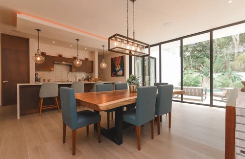 Welcome to Modern Living in Tulum! Beautifully decorated with custom furniture and the most comfortable beds, linens and more! This home is equipped with everything you need, truly a home away from home! A ground floor patio with private pool and an upstairs terrace with a state of the art built in BBQ. Every detail was considered to make your vacation a lasting memory. Nestled in the jungle of Tulum, but close to the beach, downtown and ruins.