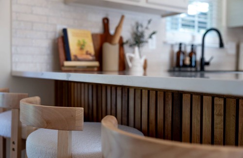 3 smart tvs with streaming access Fully equipped kitchen with modern appliances, coffee essentials, and generously stocked cookware, bakeware, and serving essentials.