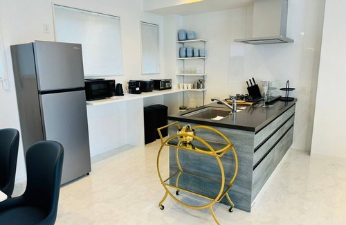 as you settle into the place, you'll find a dining area, a bbq grill, and air conditioning Bathroom amenities include a hair dryer, towels, and toilet paper. Prepare a home-cooked meal in the kitchen, complete with an oven, a stovetop, and a refrigerator, as well as a coffee maker, an electric kettle, and an ice maker. And there's access to laundry facilities, so you can even pack a bit lighter.