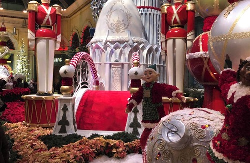 A mile away from the Las Vegas Strip, Westgate Las Vegas Resort Casino has a luxurious king bed, a 60-inch LED TV, and a luxurious bathroom. It also has a wet bar with a microwave, mini refrigerator, and is specifically designated as non-smoking. The room has a well-organized desk and chairs, and we provide extra amenities such as a hair dryer, iron, and WiFi. The room is decorated in black and gold, and our host is very accommodating..