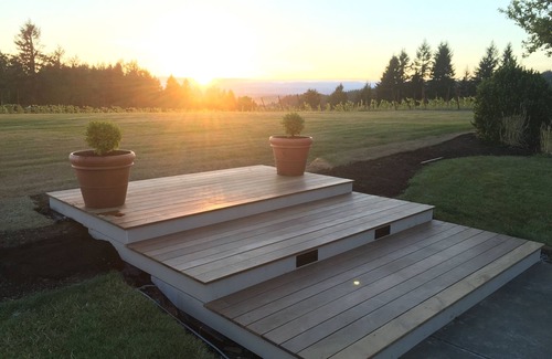 our beautiful eola amity hills outdoor living space with spectacular views await you at this magnificent 30-acre estate AtTheJoy sits in the middle of the Anahata Vineyard where you can enjoy panoramic views of the Van Duzer Corridor to the west and Temperance Hill to the east. Spend peaceful days around the patio where you can bask in the sun, swim in the pool or relax in cozy lounge areas. In the evening ignite the fire pit for ambiance, enjoy some wine and take a soak in the hot tub.