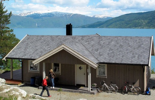 House "Lyktvorholmen". 3 km from the centre of Vik, 53 km from the centre of Sogndal, 73 km from the centre of Voss, in a secluded position, 25 m from the fijord. Private: natural state property. Terrace, garden furniture, barbecue, bathing jetty, fish-processing table. In the house: sauna. Motor boat (on order), parking on the premises. Supermarket 3 km, bus stop 500 m, ferry "Bergen" 172 km. Ski lift 45 km, fishing possibilities 300 m.