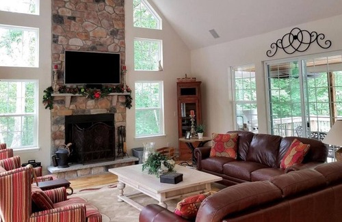 Welcome to our meticulously renovated country hideaway. The 4, 000 sq feet lodge features wood and stone finishes bathed in natural light streaming from huge windows throughout the property. Cathedral ceilings, framed by stunning views, common areas are perfect for unwinding after a long day filled with adventure and provide ample space for any size groups. The 3-stories feature a spacious open-concept living area, Five bedrooms, media and sitting rooms, and Four full baths, with space to accommodate up to 12 guests comfortably. and as a thank you for the continuous business and loyalty our guests enjoy many wonderful incentives: