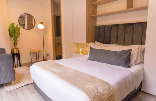 Tendrás a tu disposición un acogedor Loft que cuenta con aproximadamente 25 metros (82 pies) de espacio, una terraza privada de 25 metros (82 pies) y cuenta con todo lo necesario para una estadía cómoda, desde una cocina completamente dotada hasta una cama con lencería de excelente calidad, estarás en el corazón del parque 93 dónde encontrarás todo tipo de restaurantes para disfrutar de toda la vida nocturna de Bogotá, además estarás cerca de los más exclusivos centros comerciales y tiendas de la ciudad, una combinación perfecta para disfrutar de la ciudad..