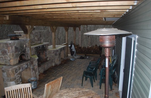 lower level has additional bedroom/playroom with 2 twin beds Ski room with benches and racks for all equipment. Third full bathroom . There is also a full bar with 14 seats, flat screen tv,shuffleboard, and poker table. A deck surrounds the main floor of the home with mountain and ski slope views. You can talk to the kids from the deck as they ride back up the slope on the lifts. Under the deck is an outdoor fireplace and wood burning pizza oven. This house is perfect for 2 or 3 families .This home will only be rented to families or older groups. Young applicants looking for a party house need not inquire. The sleeping arrangements are best suited for a combination of 4/6 adults AND 6/4children. Lift tickets are not included. Guests receive a 25% discount on lift tickets. Community amenity passes may be purchased for $10.00 per day per person. amenities include pool, lake, river accessCommunity info found at Masthope.org .