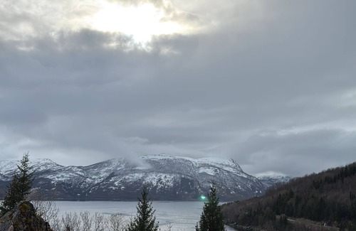 breathtaking views over the shoreline of fjords and mountains upfront.