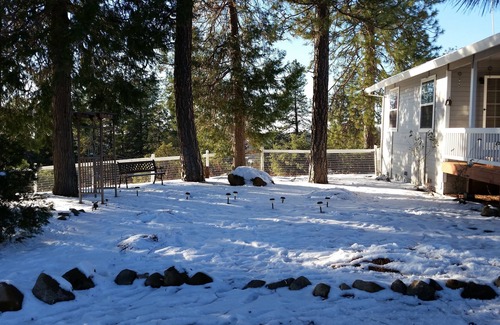 This Mediterranean style villa is nestled in the middle of 5 acres of serene and beautiful natural settings with beautiful trees and hiking trails through the EID property, this property is a few minutes way from Jenkinson Lake (Sly Park Lake and Resort area) and 45 minutes away from Lake Tahoe. It has 3 bedrooms and sleeps up to 7 people comfortably. This is where you get off the grid and just relax and put all your worries behind you. The villa has BBQ grill and inside has foosball, corn hole bean bag game, dart board, and for relaxing all day under the sun..