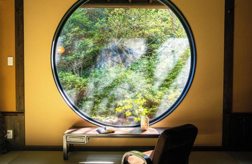 nestled within a vast 56,000㎡ estate, seiseisha is a private accommodation surrounded by the tranquility of nature Featuring expansive round windows that showcase breathtaking views, this space harmonizes traditional Japanese aesthetics with a calming ambiance, offering an ideal environment for relaxation and rejuvenation.