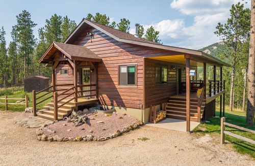 Stunning views of Buckhorn Mountain greet you in this charming custom home. Located on 3 acres 1 mile from Custer, 5 miles from Crazy Horse and a quick walk to the Michelson Trail. This home is 2 levels with a bedroom and full bath on each. A wrap around deck is perfect for morning coffee , watching wildlife or your favorite evening cocktail. Relax in the hot tub after a long day of hiking or riding..