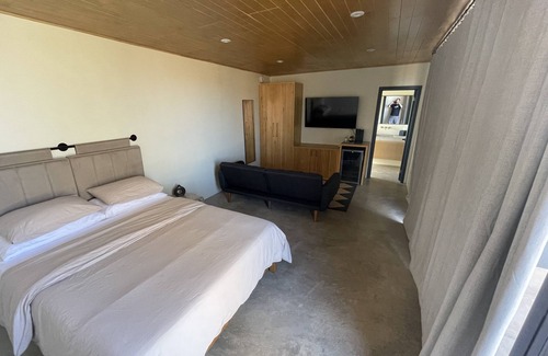 experience: at casas milu you will enjoy a private open living/bedroom space, that is filled with natural light The views continue into the bathroom, with large windows and endless views of the unique landscape. You can relax in your private fire pit, and enjoy a glass of wine, from a curated selection. Our outdoor communal area is perfect for an intimate dinner, weekend cookouts, or even small private events. The outdoor kitchen, sitting area, and large TV are sure to satisfy any group gathering. Additionally, we provide assistance with planning of private dinners and wine tastings.