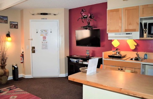 our 5 miners cabins are all about 400 sq ft cabins and provides panoramic views of the moab rim, spanish valley & the la sal mountains with access to the surrounding national & state parks, la sal mountain loop road & ken's lake recreation area These cabins have unique history in that they were originally used as management quarters at the mines south of Moab and were relocated to this property years ago. Each cabin comes complete with a kitchenette, which includes a mini fridge, microwave, Keurig coffee maker, & double burner electric stovetop. A small living area has a flat screen TV with Direct TV and a queen sleeper sofa. Sleeping a total of (4) adults, a queen bed allows to sleep (2) guests, & the sofa bed folds out to sleep an additional (2) guests. The bathroom provides a tub with shower and the cabin comes completely stocked with linens, towels & toiletries at guest check-in (No daily housekeeping service is provided). Each Miners Cabin has its own private entrance & parking, with additional parking for adventure equipment on property. The cabin welcomes dogs only, with A $10 nightly fee (2 dogs max). Please let us know if you will be bringing a dog when making the reservation..