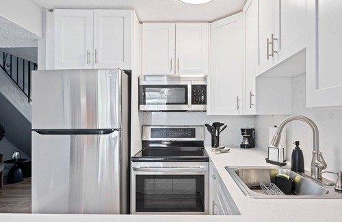 stylish 2-bed, 1 1/2-bath retreat for 6 guests, private backyard