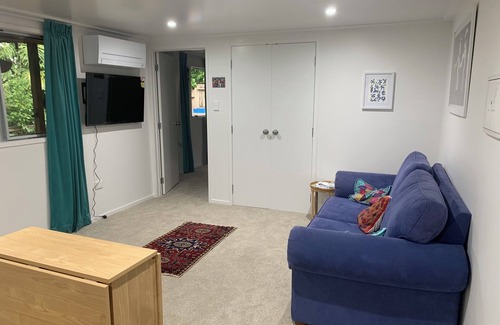 a new heat pump keeps the living space warm in the winter, cool in the summer and doors open onto a private deck for easy indoor/outdoor flow on warmer days Mature Totara trees are home to native birds and provide a great environment for guests to enjoy.