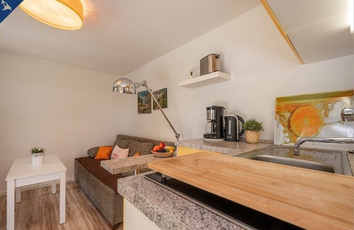 the kitchen is equipped with a stovetop and a refrigerator, as well as a coffee maker, cookware, and a toaster Connect to the free WiFi, or get cozy in front of the TV. Other amenities at this 1-bedroom, 1-bathroom rental include a living room, heating, and a dining table.