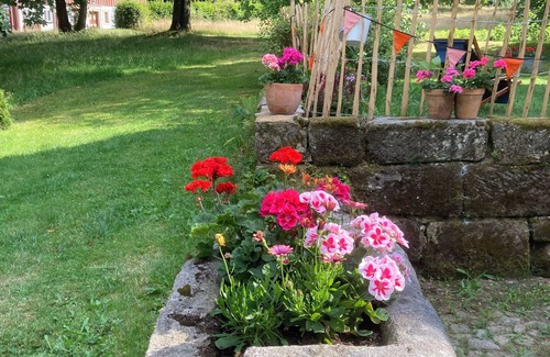Modern apartment in a historical traditional Umgebindehaus for up to six people. Directly on the forest, near the local open-air swimming pool and the cross-country skiing routes. Huge garden, shady and sunny areas. BBQ. Free WiFi, free parking on site..