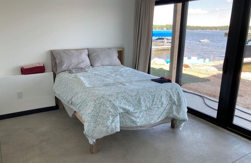 New modern home on beautiful Wall Lake. Take in the breathtaking sunrises or stargaze the stars in the massive windows. Close to Gun and Gull Lake.