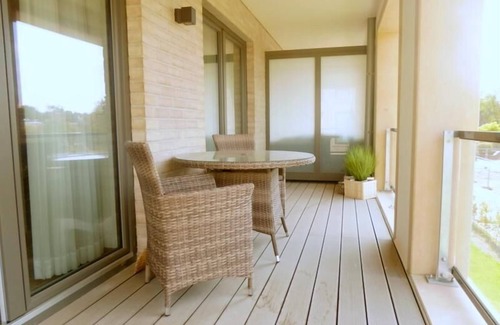 the east-facing balcony stretches across the width of the apartment and is accessible from both the living-dining area and the bedroom Here cozy garden furniture is waiting for your time out.