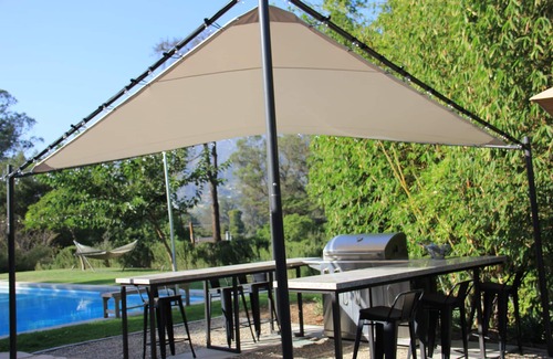 This cool, modern Montecito abode with heated (to 85 degrees) lap pool, outdoor shower and outdoor kitchen sleeps 2 in a comfortable queen-sized bed; it occupies an idyllic peaceful location with scenic mountain views.