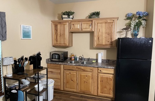 On 5 beautiful country acres, our guesthouse is perfect for peaceful relaxation. Grab a cup of coffee and head to the patio to catch up on that book you have been meaning to get too, or take a dip in the hot tub to give your aching muscles a rest. In the evening, cozy up outside and catch the breathtaking views of the moon and stars. After a memory-filled evening, snuggle up in our cozy bed and stream your favorites on the Smart TV! Great space for those looking to re-connect with nature.