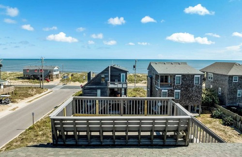when you're not at the beach, rinse off in the outdoor shower, cook dinner on the gas grill, or take in views from the rooftop deck more to come offers the perfect mix of mix of relaxation and recreation in a prime location—book your stay and start planning your next obx escape!