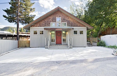 Walk to the river to fish in the morning, relax in the light-filled great room with a view of Bald Mountain. Sleeps 4 in the house, add 1-2 more if you're adventurous & use the Sheep Camp. Our fully-stocked kitchen will please the home chef. Working remotely? Enjoy 3 desks & multiple flexible work areas. Our recently-renovated, comfortable home is minutes from downtown, Sun Valley Lodge, golf, hiking, and mid-way between the two Sun Valley Warm Springs & River Run ski lodges. Bike, walk, bus. Two on-site parking spots, with room to park an RV in the adjacent dead end (summers only). Master Bedroom has a king-sized bed and en suite full bathroom. Second bedroom has two twin beds that convert into a comfortable king bed. Third bedroom is the Sheep's Camp. Fully-insulated, it is accessed via outside stairs to the backyard, and shares the the second bathroom. Half bath is upstairs adjacent to the living/dining area. Please note: ALL the bedrooms require stair access. Hot tub, large patio with dining set, lounge chair, and wild lawn area in backyard. Upstairs balcony off the Great Room has adirondack chairs, and DCS gas BBQ..