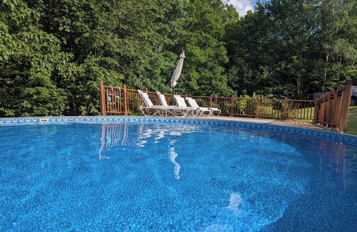 Mountains Edge Suite is a 1-7 day private property rental. Longer stays must be approved by the owner. It is a Beautiful 2 Bedroom-1 Bath ground floor Suite attached to this beautiful home and features its own private keyless entrance. (No need to meet anyone for keys). The Suite is located on the side of Scenic Bald Mountain. So if you are looking for peace and quiet this is it. The only sounds you will hear are the sounds of nature. We are ideal for couples, families and singles who want to get away from the everyday grind. We have family friendly hiking trails close by on Bald Mountain with great Mountain top views of the Sunrise and Sunsets. Bald Mountain also has incredible views of the surrounding area that will not disappoint on a clear day. SPECTACTULAR LEAF PEEPING VIEWS during the fall season! You will also enjoy great views of the night stars on a clear night from your suite. We offer easy Self check-in with keyless entry into a private suite. Accommodations are1 King Bed,1 Queen Bed, and 1 single self-inflating bed. You will also enjoy Free Parking, Free Access (no extra charge) to a beautiful Outdoor 24 foot above-ground swimming pool, Outside Fire pit, Kitchenette, Wi-Fi, Laptop-friendly workspace, Direct TV, DVD player (upon request), Washer/Dryer, A/C & Heat. Your Suite is a great jump-off point to Bar Harbor, Acadia NP, Belfast, Camden, Rockland. (Approximately 55-70 minutes). UMO and Husson Universities (25-30 minutes)..