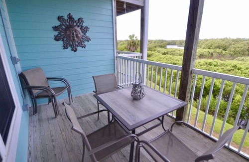 Lovely furnished condo with designer decor! Beachy vibe with class invites you to downshift from every day life while enjoying beautiful surroundings. From the gorgeous rugs to the pewter leather rocker recliner to the locally sourced art throughout, you will see immediately this is no average condo. Fully furnished kitchen with new appliances, new dishes, and spotless cleaning will allow you to cook in for every meal you desire. Quality mattresses and high end linens throughout will have you sleeping like a baby! Every amenity has been planned for your best stay. If you're staying in for the night, you'll love the overstuffed couch and loveseat combo for plenty of seating for the entire group. Big screen TV with sound bar give you theater style in a private setting. Both bedrooms have TVs and DVD players for maximum entertainment for everyone. You won't want to leave the balcony porch! Rocking chairs, ceiling fan and plenty of dining seating are set for you to take in the view all day long. Don't worry, if you decide to view at night, small lanterns keep your visibility high and distractions low. Bird watcher's take note: this is one of the finest places to view roseate spoonbills roosting in the mangroves! Osprey, Eagles, and skimmers around. Community golf cart charging station to recharge from gallivanting around town—it's one of the best ways to see the island! Kayak rack for the outdoor enthusiast is directly below this unit. Go ahead and book this one before it gets away. This is the premier condo in the area! Welcome to "Paradise in the Mangroves"! Rate Notes: A 3.5% credit card fee will be applied