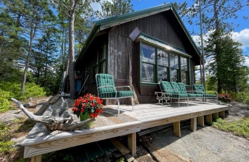 Experience the allure of Maine on your own breathtaking island...Driftwood Island Camp is a 1/4 acre island/camp located on West Grand Lake Stream. It is an outdoor enthusiast, artist or photographer's dream come true as it is famous for landlocked salmon, trout and bass. If canoeing, kayaking and paddleboarding are your thing you will feel right at home on the water while bearing witness to a very thriving loon and waterfowl population. Soak in the breathtaking sunsets and enjoy the beautiful walking trails situated throughout a 58k acre community forest that is protected by the Down East Lakes Land Trust. Registered Maine guides are also available for fishing, bird watching and exploring. There is a small 14ft motor boat provided to transport you and your guests to and from the island. You will find all of the necessary equipment in a fully functional kitchen and outdoor shower . Biodegradable soaps and shampoos will be provided for you as well as all of the liners and toilet paper for the incinolet toilet. * Limited cell service*.