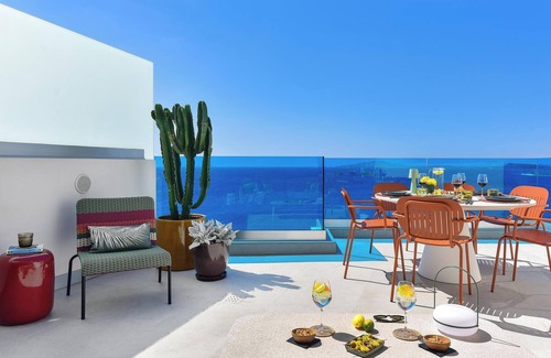 experience the ultimate beach getaway at neptuno suite playa, a stunning modern apartment with breathtaking sea views This luxurious accommodation offers 2 spacious bedrooms, each featuring comfortable double beds, making it perfect for couples or small families. The apartment's expansive terrace is ideal for outdoor dining and relaxing, with panoramic views of the sparkling ocean.