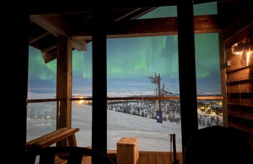 A modern but cozy lodge with wonderful view over the mountains just on the ski slopes. Sun all day with nice outdoor areas to enjoy. Speacious areas so enjoying your holiday together with family and friends will be confortable. Delicate interior and sauna. Great nature just outside the doorstep..