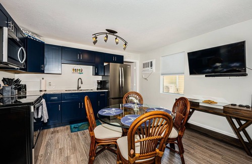 this tropical sunset beach cottage has been carefully maintained to preserve the original condition while adding modern-day technological amenities for the comfort and convenience of our guests Walk to local restaurants, bars, shops and of course the BEACH !This cottage comfortably sleeps 4 with the large pull out sofa off the living room (basically a second bedroom) This is a beach lover's community straight out of a Buffett song. Come and enjoy our little slice of paradise..